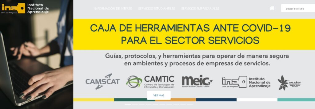 El Instituto Nacional de Aprendizaje (INA), Ministerio de Economía, Industria y Comercio (MEIC), la Cámara de Tecnologías de Información y Comunicación (CAMTIC) y la Cámara de Servicios Corporativos de Alta Tecnología (CamSCAT), unieron esfuerzos para la creación de la “Caja de herramientas para el Sector Servicios”, una guía virtual, para facilitar la aplicación de los protocolos sanitarios, establecidos por el Ministerio de Salud, ante la emergencia sanitaria por el COVID-19.